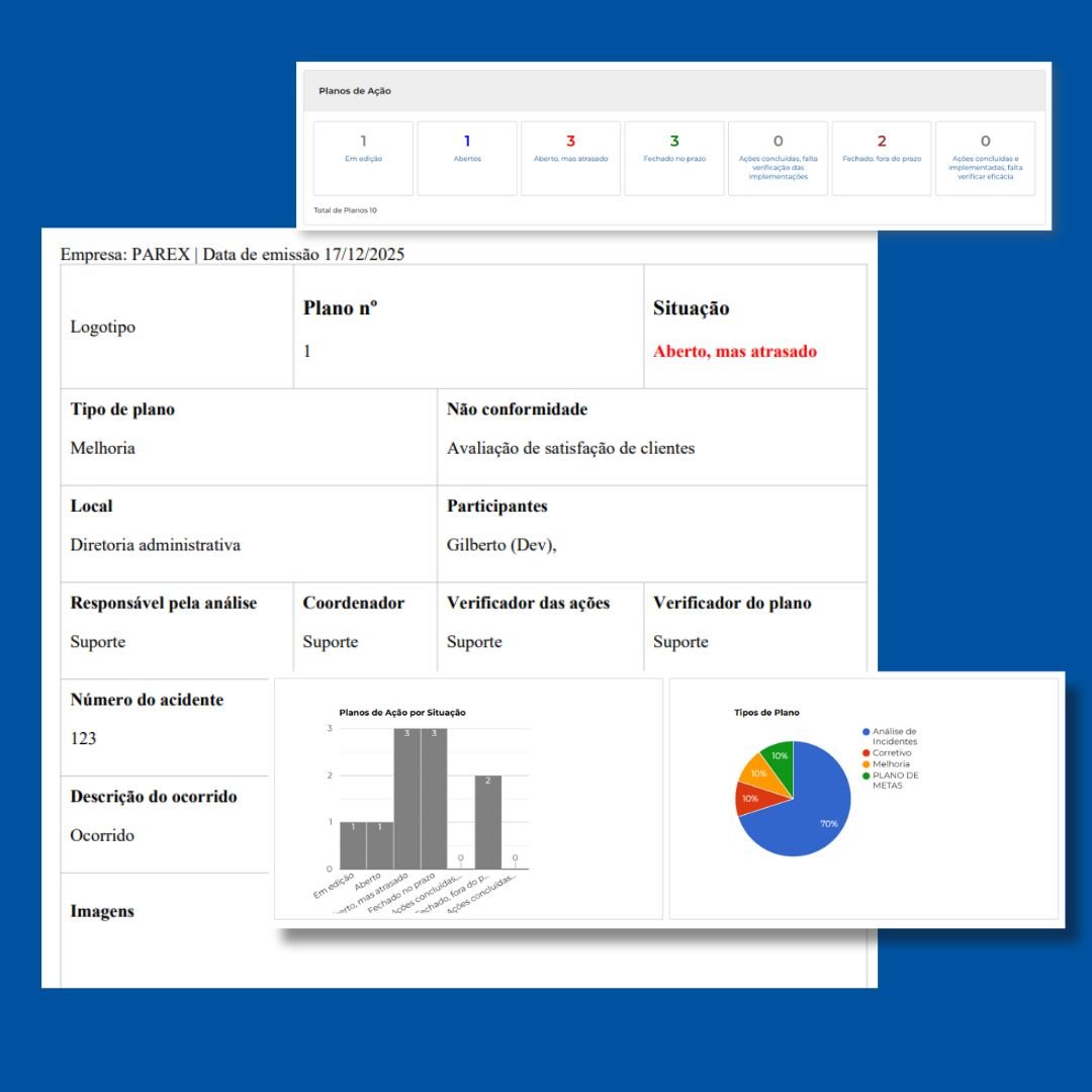 Tenha visão clara de prazos, responsáveis e status das ações corretivas e preventivas, garantindo que nada fique para trás.